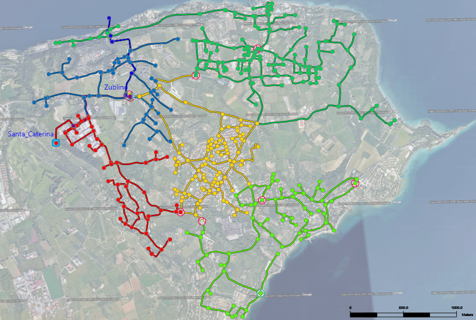 Zone isolate idraulicamente: ogni distretto può essere chiuso o separato dal resto della rete